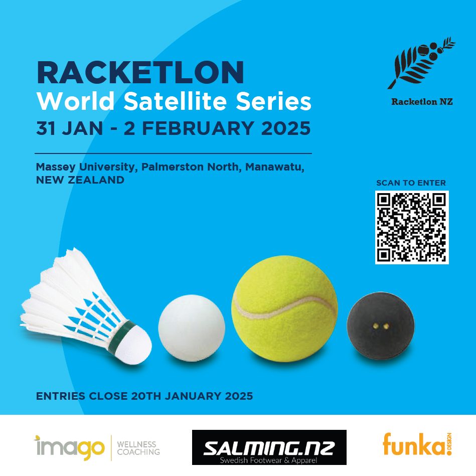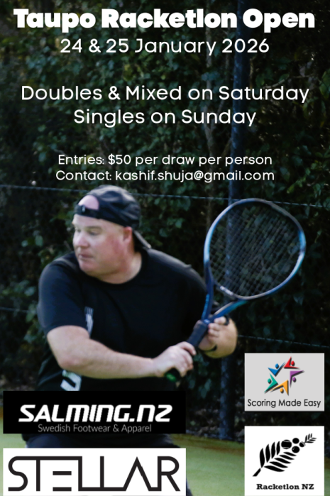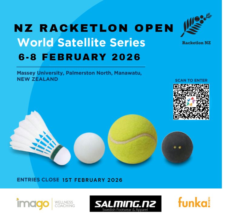 Racketlon NZ Salming have been the biggest supporter for our Racketlon tournaments - please consider our sponsor when ordering gear: The Racketlon World Championships were held in Austria in 2022, Sion Wiggin represented NZ and finished in the top 10 in the singles and top 8 in the doubles you can watch him in action in the new Videos section - Videos Leigh Sands and Eric Durand (have played in some of our tournaments) were also at the world champs with Eric winning the O40s Doubles 2024-25 Calendar Edit {{CalendarText}} Email racketlonnz@yahoo.com Racketlon is Table Tennis, Badminton, Squash & Tennis in that order, Each sport is played up to 21 points, most points at the end wins Racketlon NZ had it's first tournament on October 26 2013 in North Harbour.